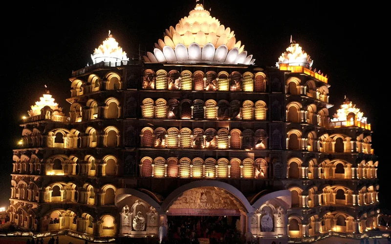 Swarved Mahamandir is a seven-story meditation center located in Varanasi, India. It is the world’s largest meditation center with a capacity of over 20,000 people. The center is dedicated to the Swarved, a spiritual text written by Sadguru Sadafaldeoji Maharaj. Swarved Mahamandir is a significant landmark in Varanasi. The center is a symbol of the city’s spiritual importance and its commitment to promoting peace and harmony.